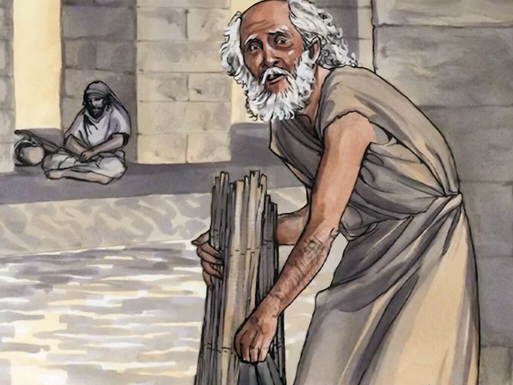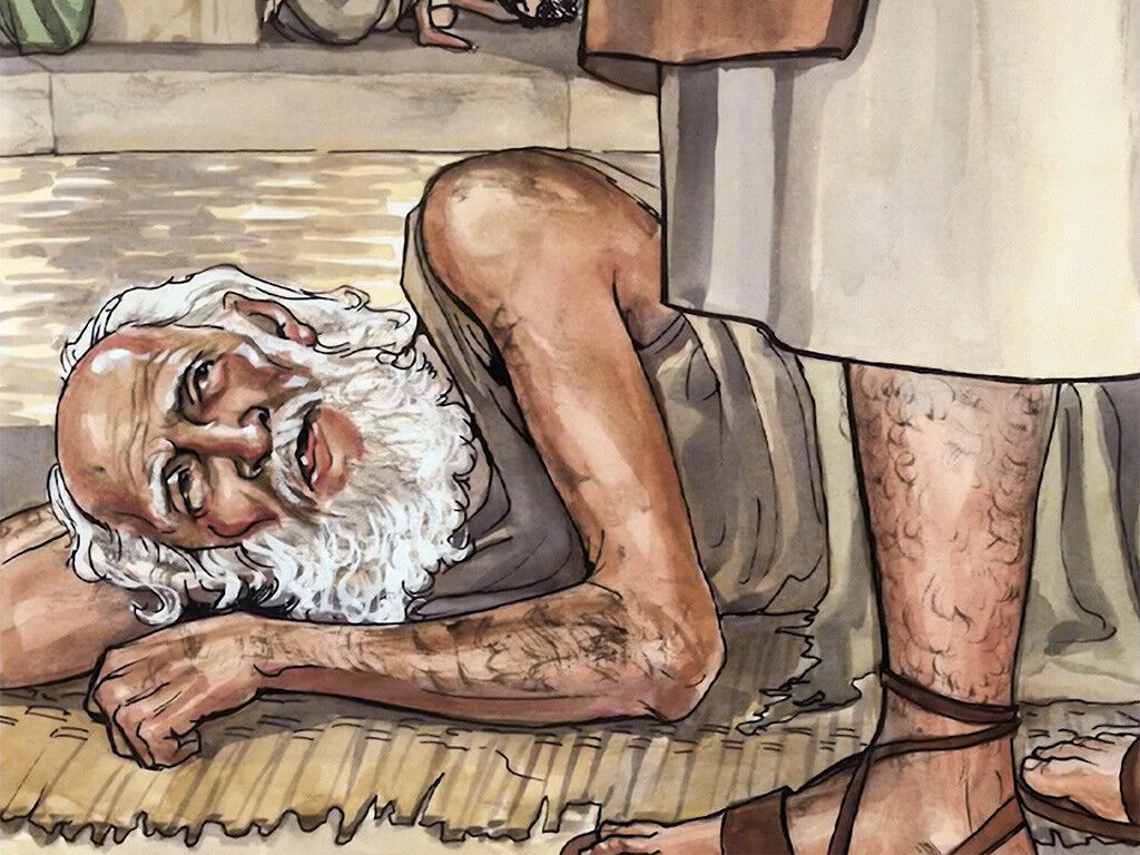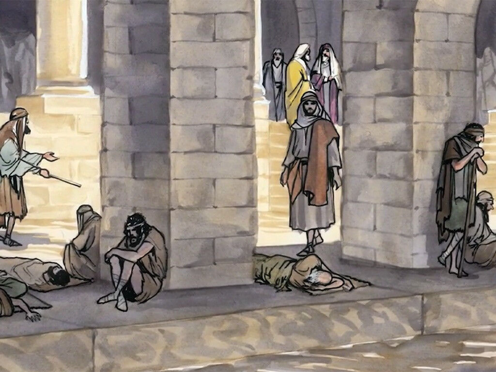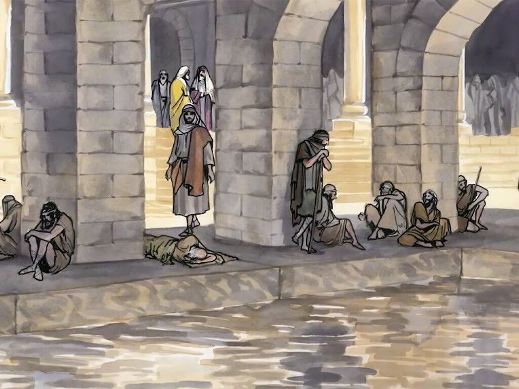 Иисус исцеляет больного человека около купальни